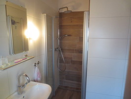 Das Badezimmer wurde im Oktober 2013 komplett neu renoviert. Es hat schöne moderne Fliesen in Holzoptik, Fußbodenheizung, Handtuchheizung und eine Regendusche runden den neuen Bereich ab.